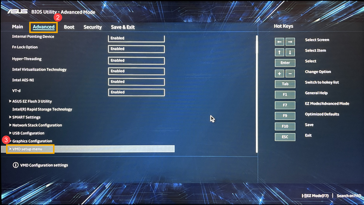 - از تب Advanced گزینه VMD setup menu را انتخاب کنید.