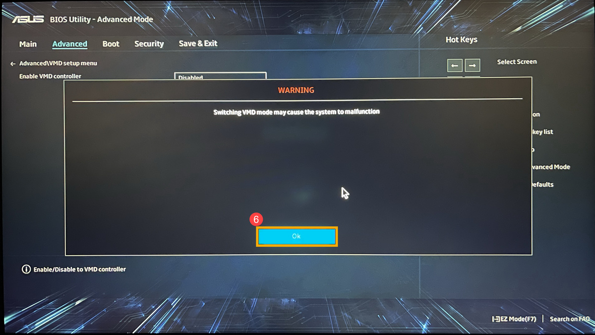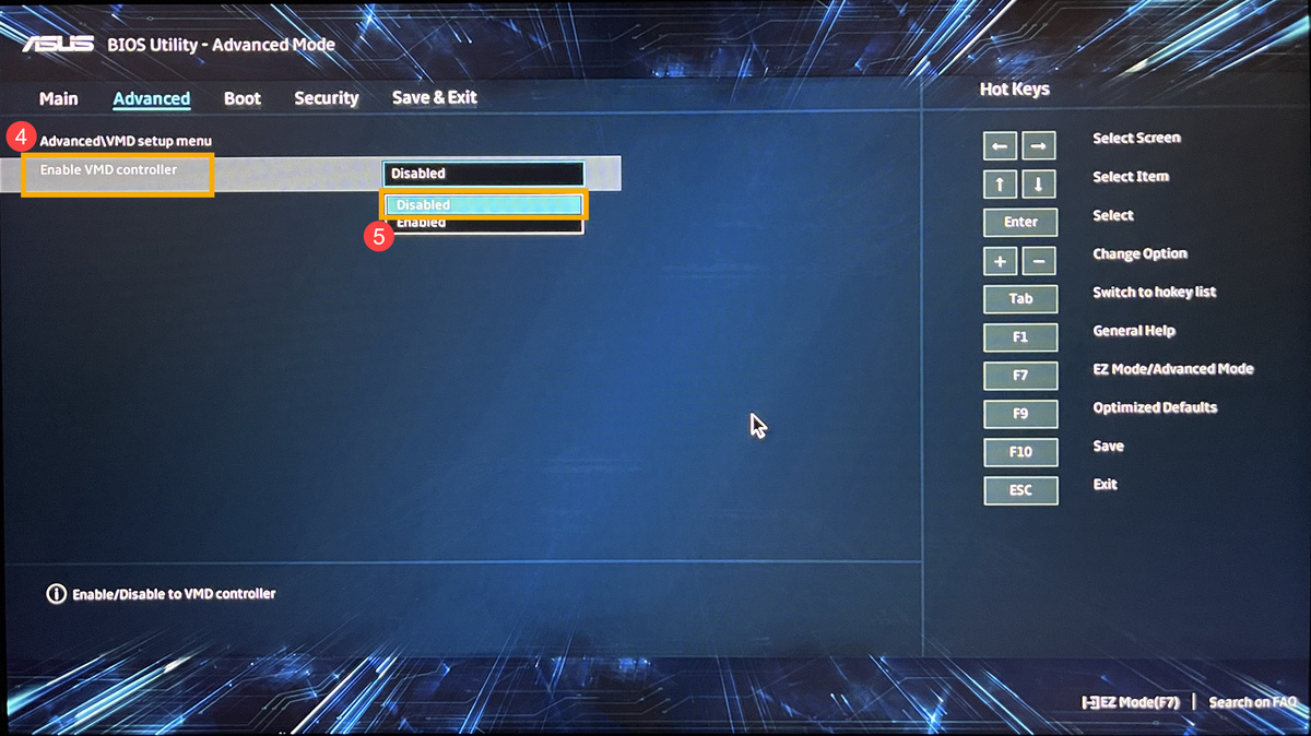 - گزینه Enable VMD Controller را بر روی Disabled قرار دهید.