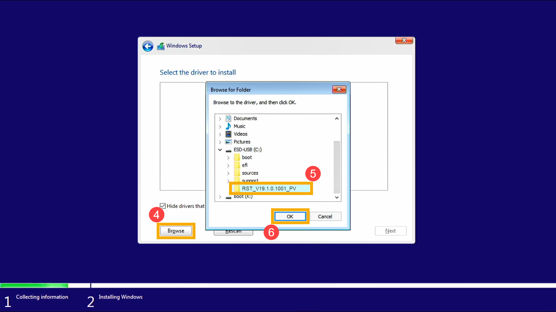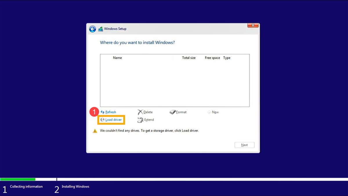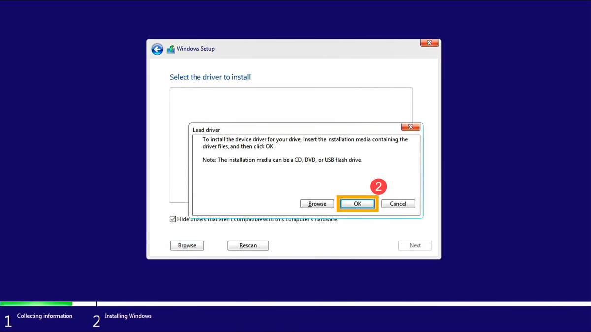 در صفحهی «Where do you want to install Windows»، روی Load Driverکلیک کنید و سپس OK را بزنید.